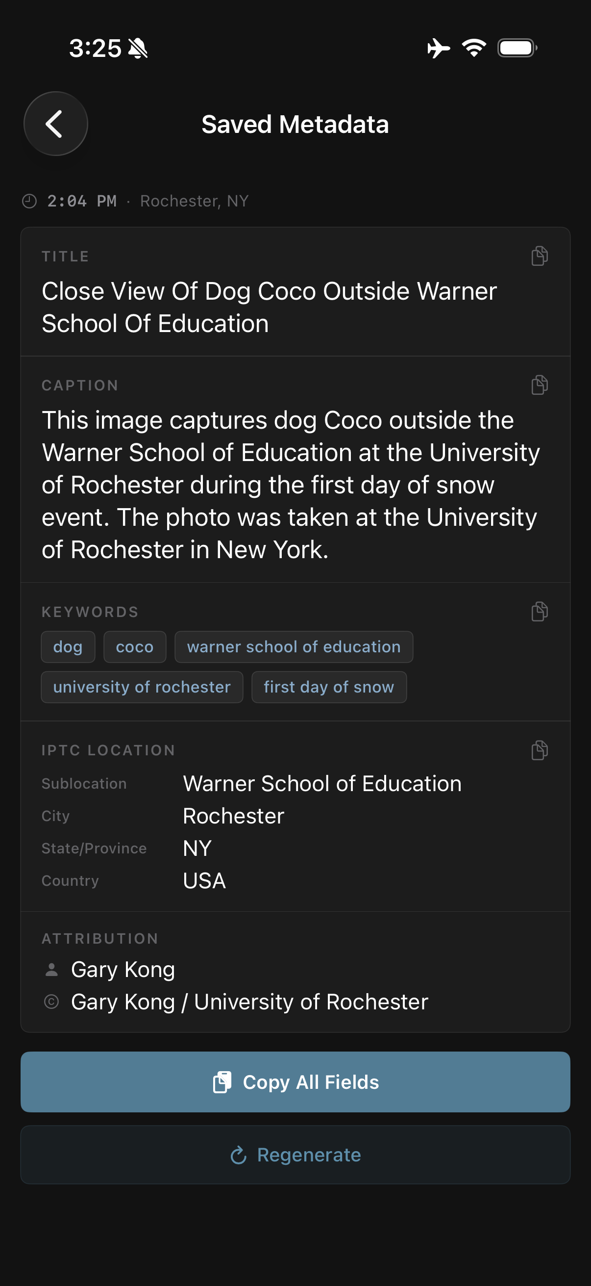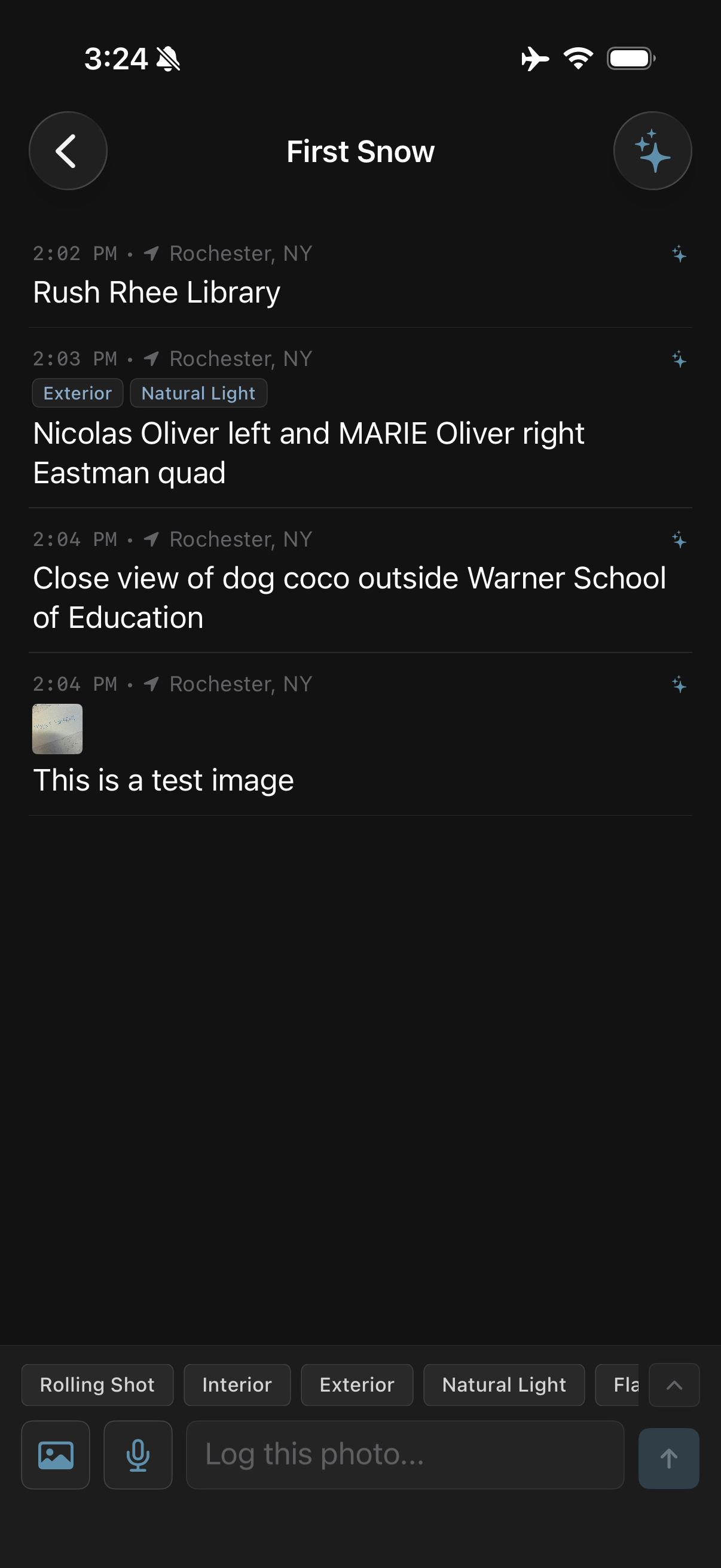 Back MetaDesk is an iOS app for photographers that lets them log shoot events quickly (text or voice) in a timeline-style chat Ul, auto-capturing time and GPS, then converting logs into export-ready IPTC metadata with Al.* Under development
